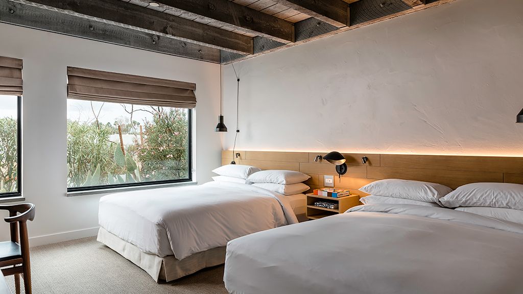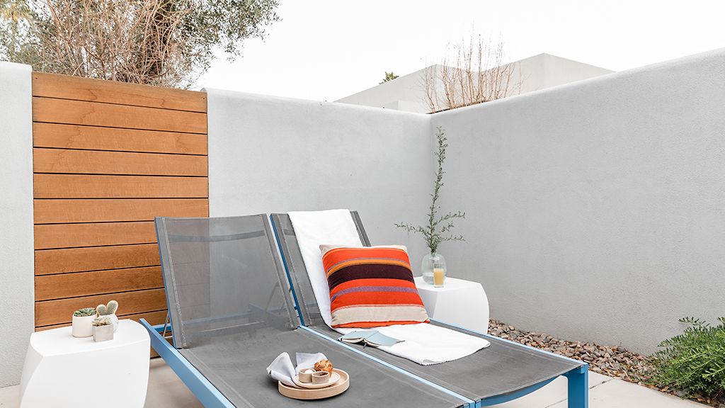 Settle into this modern bungalow featuring two plush queen beds and an oversized bathroom. This bungalow also offers a private patio with lounge furnishings to sit back and enjoy the desert scenery and is named for design icons Charles and Ray Eames.