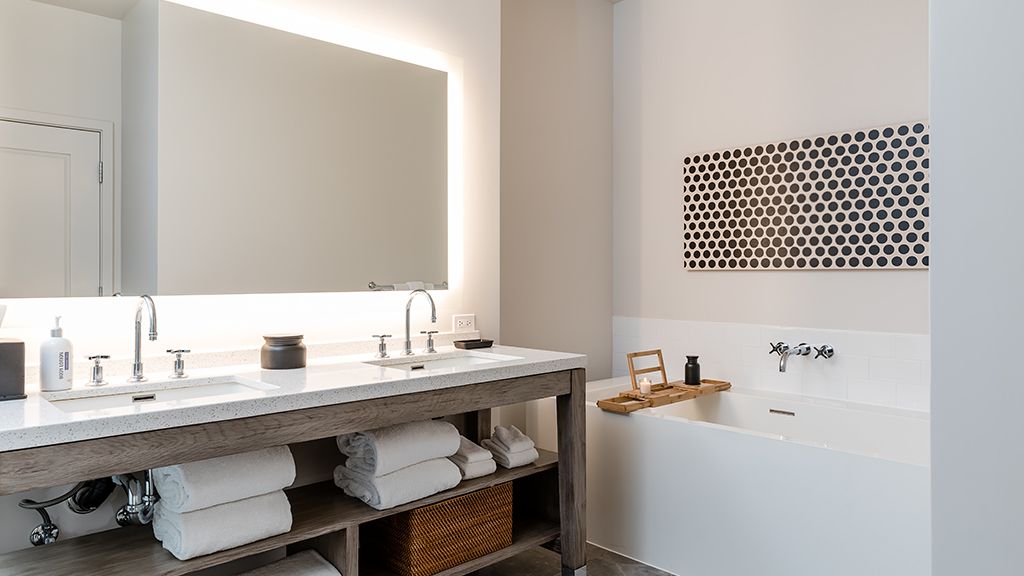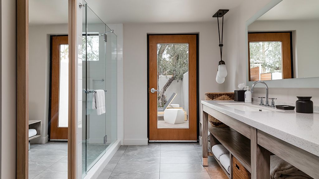 Named for the renowned modern artist and designer Charley Harper, whose fascination with the natural world was captured in his minimal realist style, this one-of-a-kind studio-style suite features a mid-century inspired living and entertainment area in addition to an oversized, naturally lit bathroom and a private patio with an outdoor shower perfect for a peaceful day in the Sonoran Desert sun. Keep up your healthy routines with a built-in Tonal, a smart-gym system with personalized expert coaching and digital weights. The suite comes with two bikes for you to explore the 23 acres of the resort.