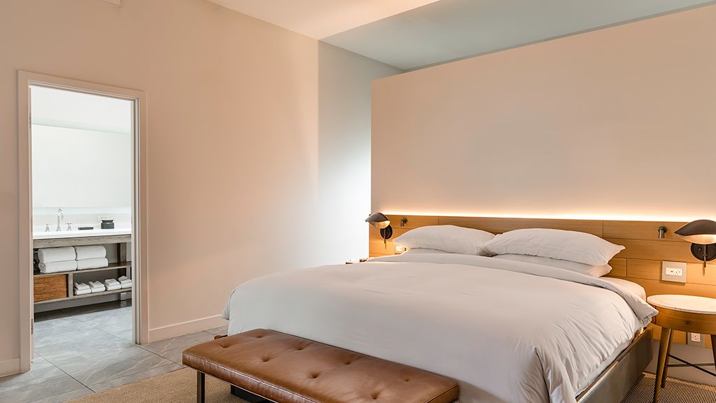 Whether you are looking for a relaxing getaway or want to keep with your wellness routine, this suite provides the perfect healthy retreat within the serenity of the Sonoran Desert—complete with a king bedroom, queen-size sleeper sofa, and two full bathrooms as well as a Tonal smart-gym system with personalized coaching and digital weights. Enjoy access to two complimentary cruiser bikes and the Spa Pool, along with a healthy minibar and private terraces for recovery time in your suite.