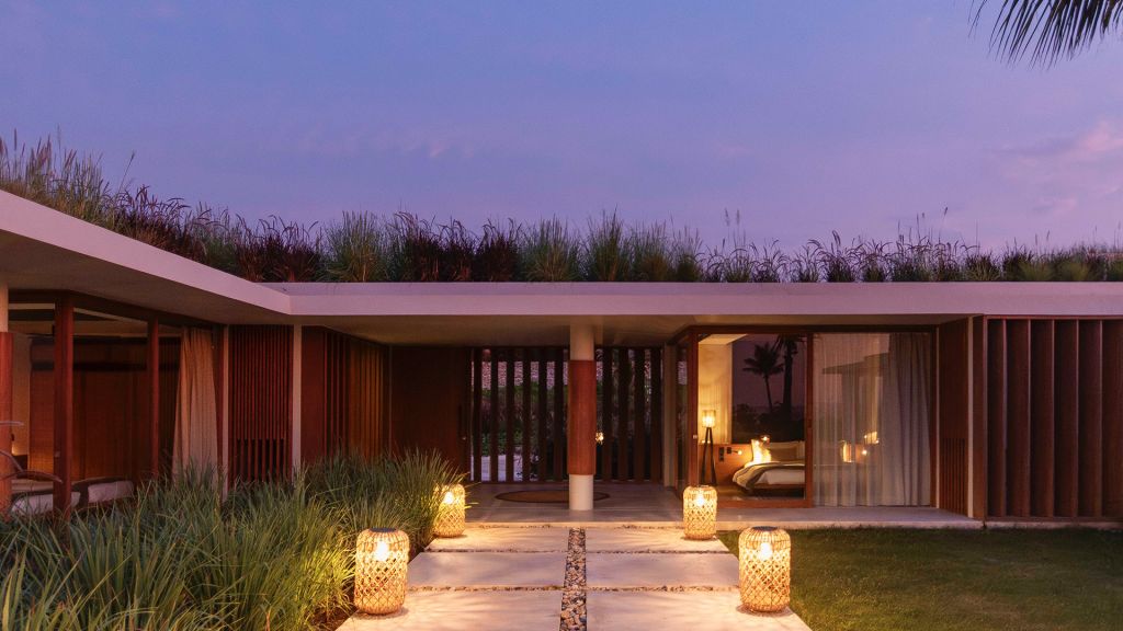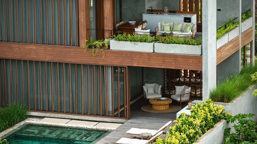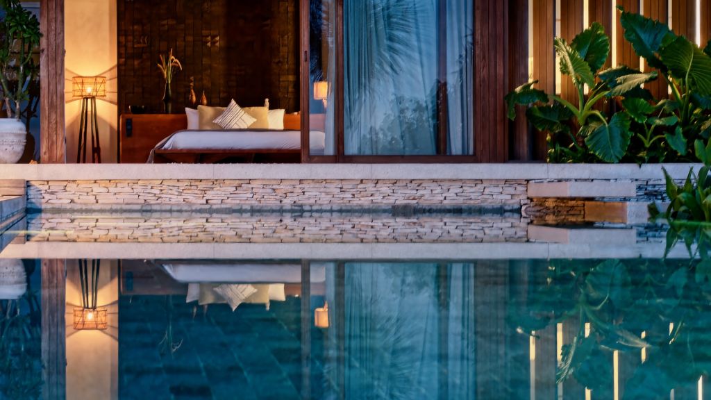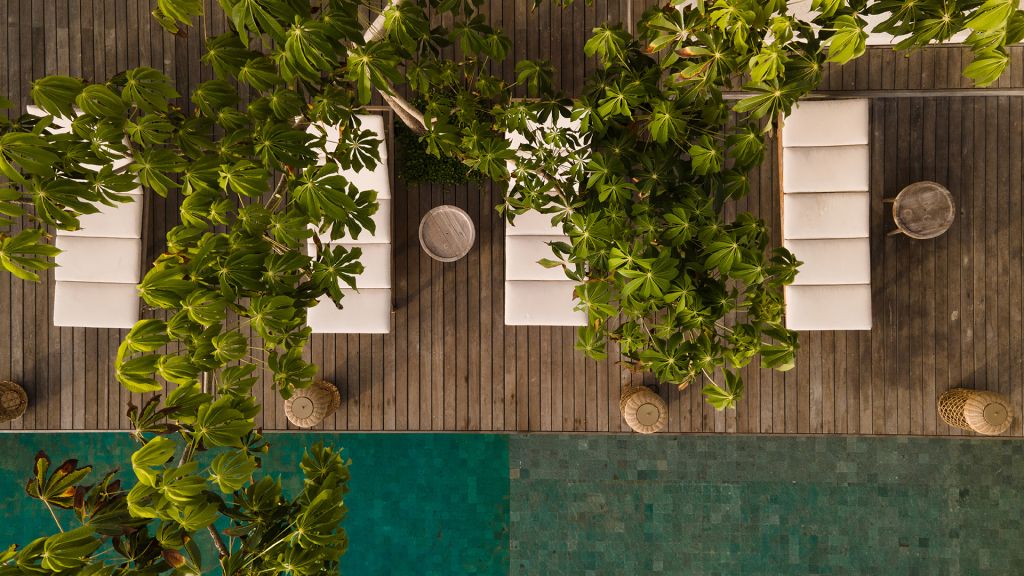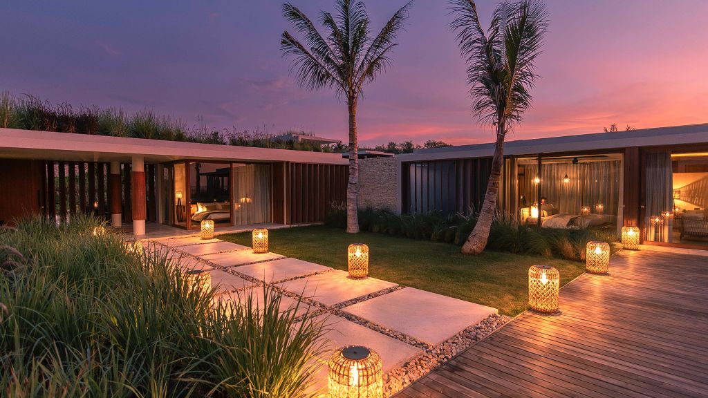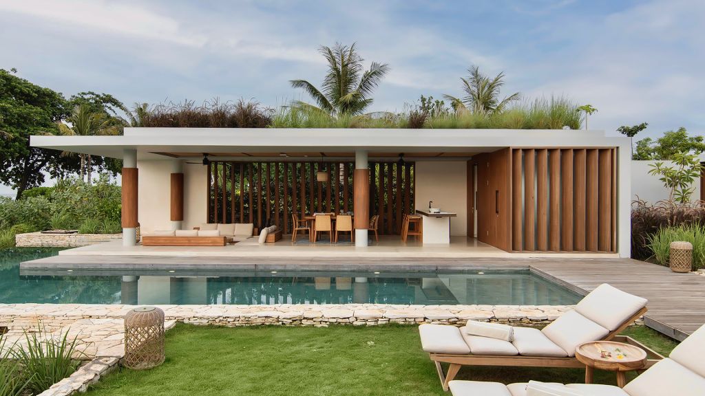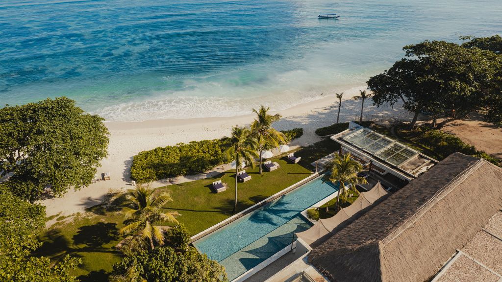 270sqm (2,910sqft) - Three bedrooms with three ensuite bathrooms - 2 super king and 2 single beds - Walk-in shower and freestanding bathtub - Double vanity - Ocean view from every room - L-shaped infinity pool (13x4x7m) - Vast private garden - Semi-outdoor pool lounge area - Dining table for 6 - Indoor living room - Fully equipped kitchen - Kamado grill - Smeg espresso machine - Klipsch Heritage Groove speakers - Complimentary mini-bar refilled daily - Complimentary Wi-Fi. The 3-bedroom villas are just set back from the beach in the 2nd row. The master bedroom offers sweeping ocean views from the comfort of bed at daybreak, drinks at sunset in the private lounge area against a backdrop of the sea, and a bath under the stars in the semi-open ensuite bathroom come night. Two more bedrooms, each with ocean view, complete the luxurious accommodation of the 3-bedroom villas. Each villa also boasts a spacious lounge area with a fully-equipped kitchen. With an expansive private garden, complete with a large L-shaped swimming pool and BBQ area, the villas are perfect for families and groups of friends, offering them the luxury of time together while also providing a multitude of secluded spaces for moments of privacy.