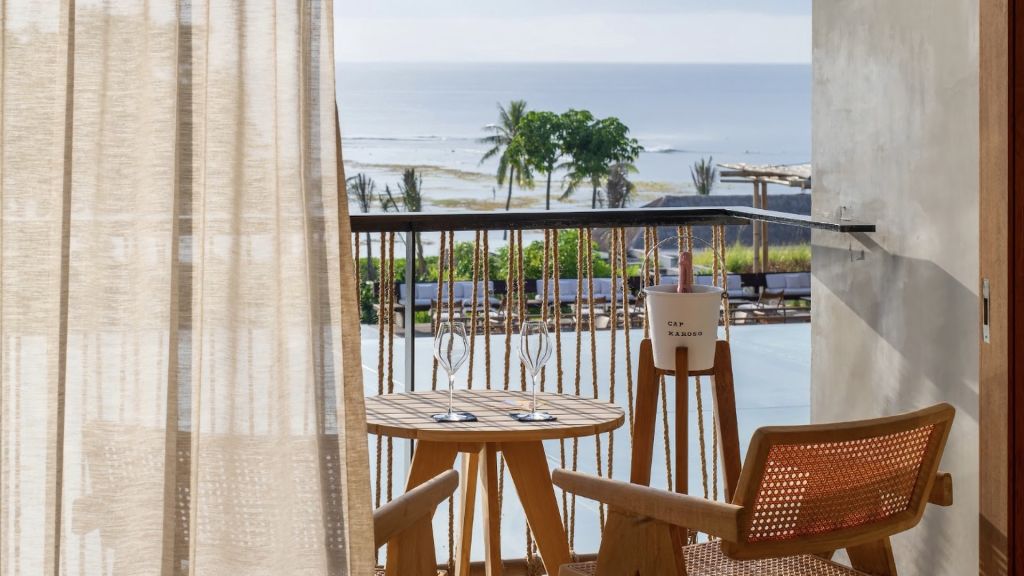 - 270sqm (2, 910sqft) - three bedrooms with three ensuite bathrooms - 2 super king and 2 single beds - walk-in shower and freestanding bathtub - double vanity - ocean view from every room - l-shaped infinity pool (13x4x7m) - direct access to the beach - private sunbeds at the beach - vast private garden - semi-outdoor pool lounge area - dining table for 6 - indoor living room - fully equipped kitchen - kamado grill - smeg espresso machine - klipsch heritage groove speakers - complimentary mini-bar refilled daily - complimentary wi-fi the three-bedroom beachfront villas provide the ultimate luxury experience, where art and sophisticated details meet the oceanfront location. The master bedroom features sweeping ocean views, allowing guests to enjoy breathtaking sunrises from the comfort of their bed, unwind with sunset drinks in the private lounge area overlooking the sea, and indulge in starlit baths in the semi-open ensuite bathroom at night. Two additional bedrooms, each offering ocean views, enhance the luxurious accommodations. The villa also includes a spacious lounge area with a fully-equipped kitchen. Set within an expansive private garden, the property boasts a large l-shaped swimming pool and a scenic path leading directly to the beach. These beachfront villas are perfect for couples, families, or groups of friends seeking to experience the magic of cap karoso at its finest. Exclusive experiences - minimum of 3-night stay: harvest-to-breakfast at the farm in-villa cinema under the stars one wellness / indulgence experience or discovery adventure from our exclusive selection: -sunrise or sunset picnic at a secret viewpoint -in-villa sunset bath ritual -private guided breathwork / yoga / slow movement session -tailored 2-hour kodi discovery