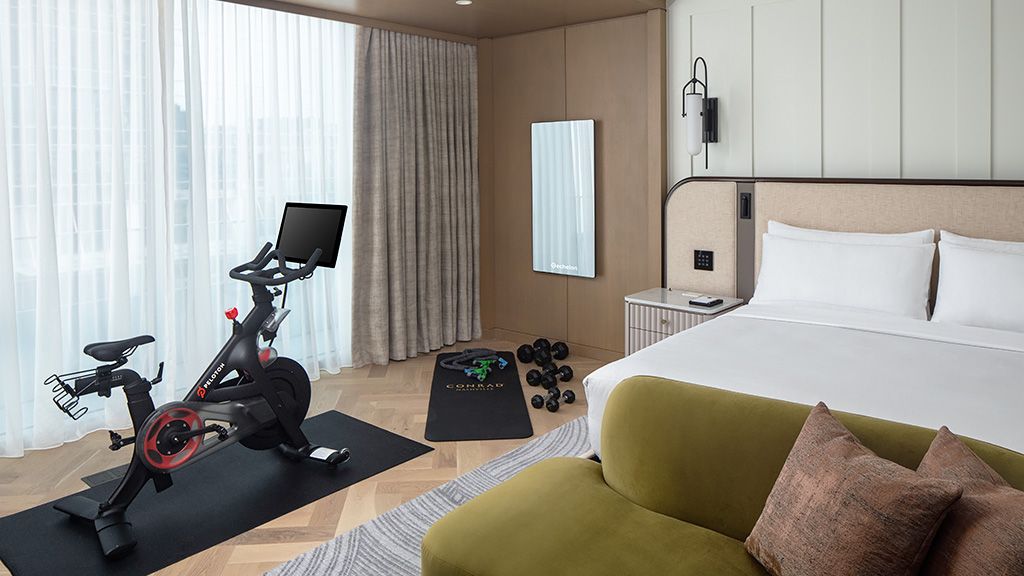 Features king bed, Peleton bike, weights, Wi-Fi, HDTV, Espresso machine and safe.