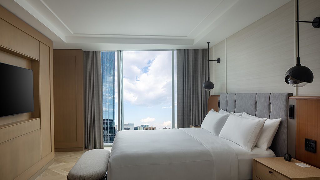 Hearing accessible room with king bed, Wi-Fi, HDTV, marble floors, safe, luxury linens, minibar and turndown service.