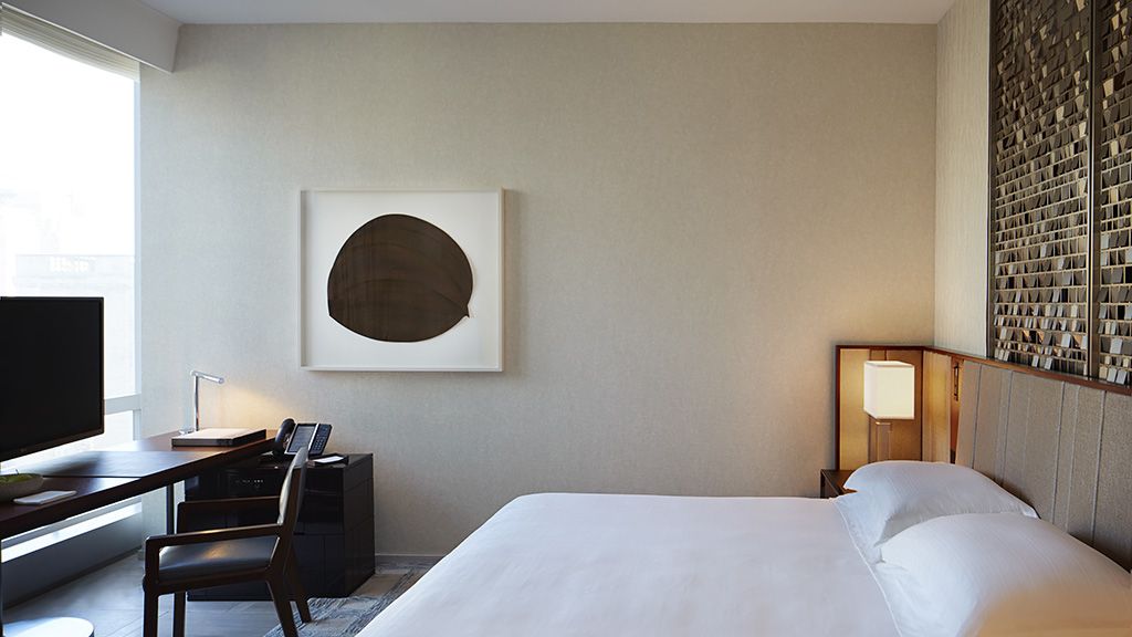 With 1,000 square feet, the One-Bedroom Terrace Suite offers a private terrace with city views, sophisticated artwork, custom Yabu Pushelberg furnishings, and more.