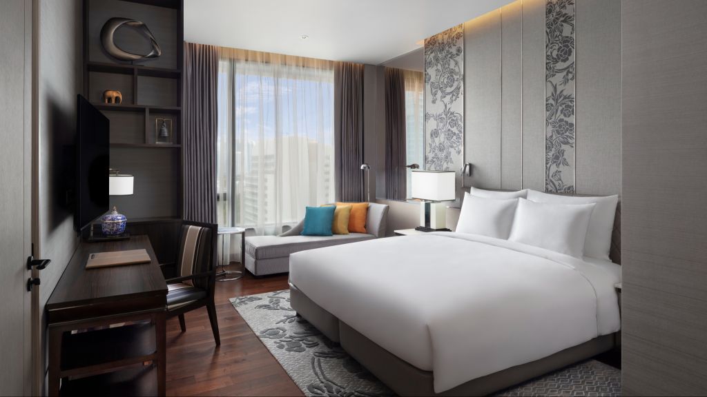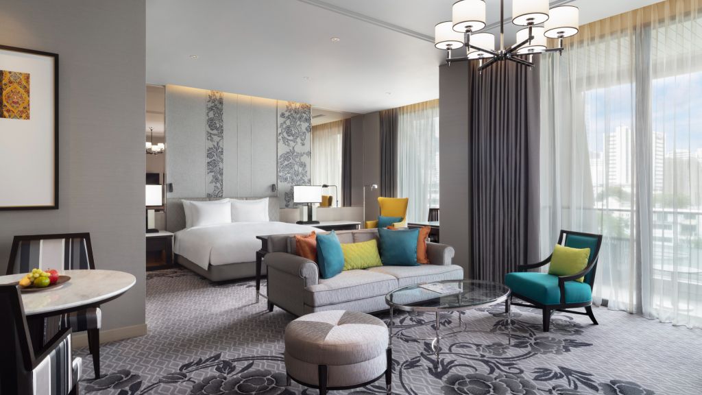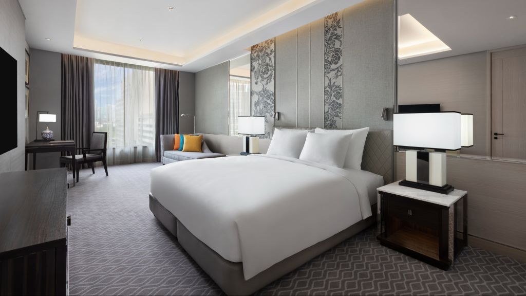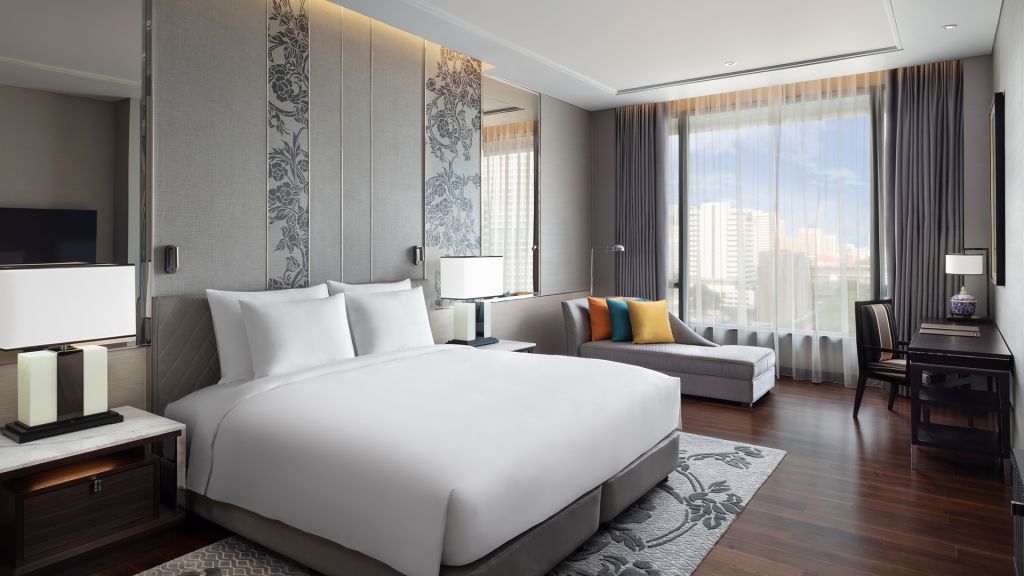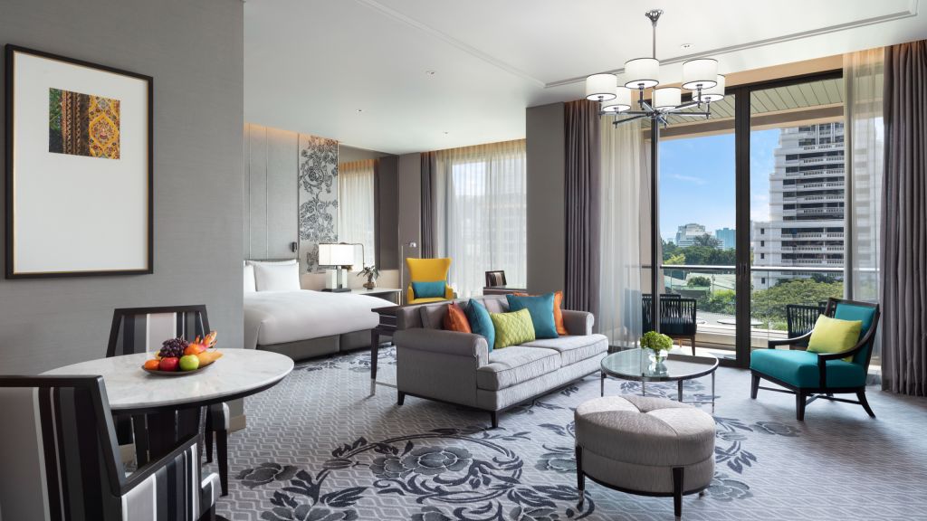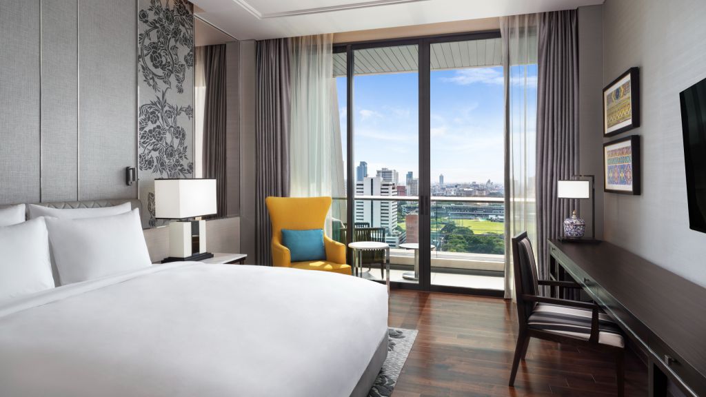 Grand deluxe king room - 1 king bed. A selection of exceptionally spacious rooms with a minimum of 66 sq m of space, and with big windows letting in plentiful natural daylight, the grand deluxe room provides an outstanding, comfortable and airy living area. Each grand deluxe room has its own balcony from which to enjoy scenic views. The room's contemporary thai décor provides a gracious setting that frames the room's living space. Maximum occupancy: 3 adults and 1 child, or 2 adults and 2 children under 12 years old. Maximum 1 extra bed per bedroom.