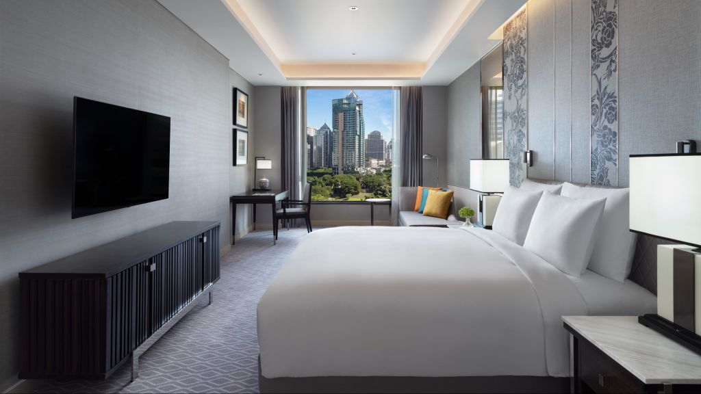 Executive club king room - 1 king bed. These well appointed rooms are luxurious in style featuring contemporary thai elegance. The oversized executive club room spanning up to 90 sqm is ideal for both leisure and business traveller. The en-suite spacious bathroom with a modern oval shaped oversized freestanding bathtub and a separate rain shower offers a perfect indulgent bath or a therapeutic shower to relax after a day out exploring the wonders of bangkok's city life. The luxurious interiors feature contemporary comforts including a generous 65 inch smart tv, modern multimedia systems and complimentary minibar featuring locally curated juices and healthy treats. Enjoy exclusive access to the club lounge with additional benefits offering complimentary breakfast, all day refreshments, afternoon tea and evening cocktails while living the good life. Maximum occupancy: 4 (including infant or children and up to 3 adults), maximum 1 extra bed per bedroom