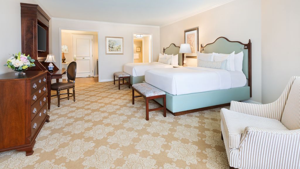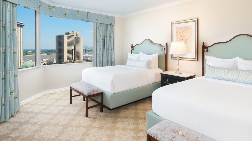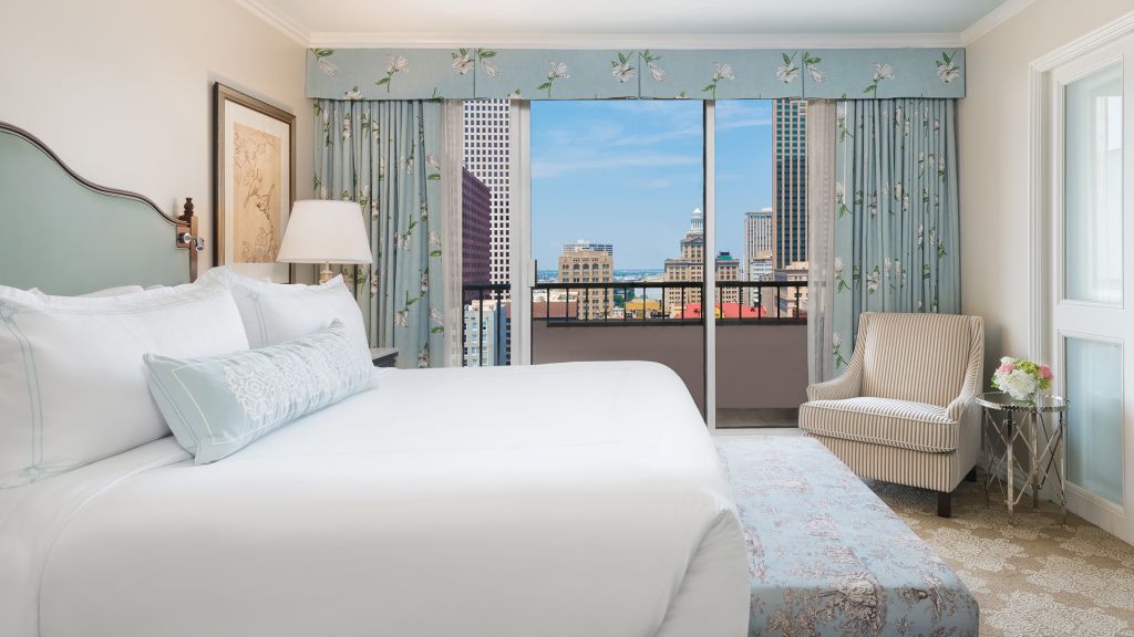 French doors separating living room, expansive vanity dressing area, two hd smart tvs, complimentary wi-fi, many have a private balcony, cubietime bluetooth alarm clock with charging ports, fully stocked mini-bar, deluxe sofa sleeper, mini refrigerator, designer bath amenities by diptyque, italian marble over-sized bathroom, signature windsor court plush bath robes and slippers, in-room safe, twice daily housekeeping service, 100% non-smoking hotel