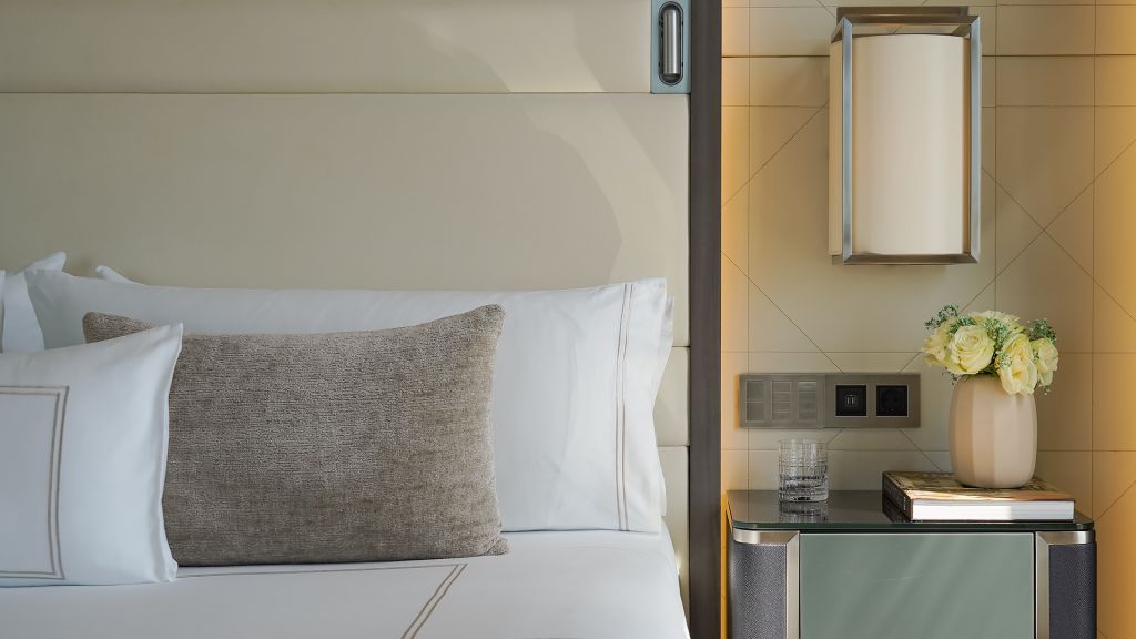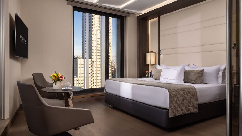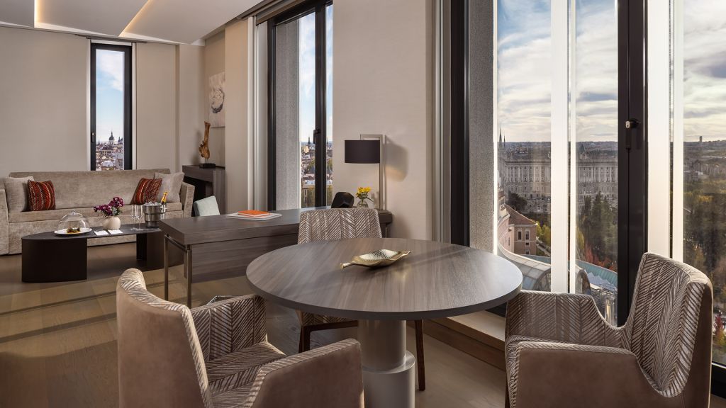 The hotel offers two signature suites: the Executive Suite and the Romantic Suite, the ultimate expression of contemporary luxury, sophistication, and avant-garde design. Located on the highest floors of the building, both enjoy privileged views of the Royal Palace. Each suite features a separate living room, conceived as a space of balance and distinction, where absolute comfort and high-quality materials come together to deliver a truly exceptional and unforgettable experience.