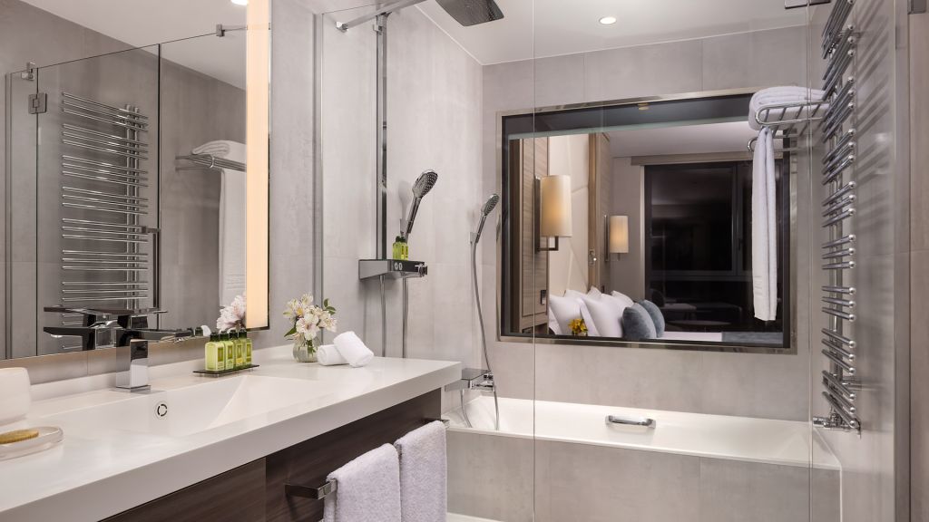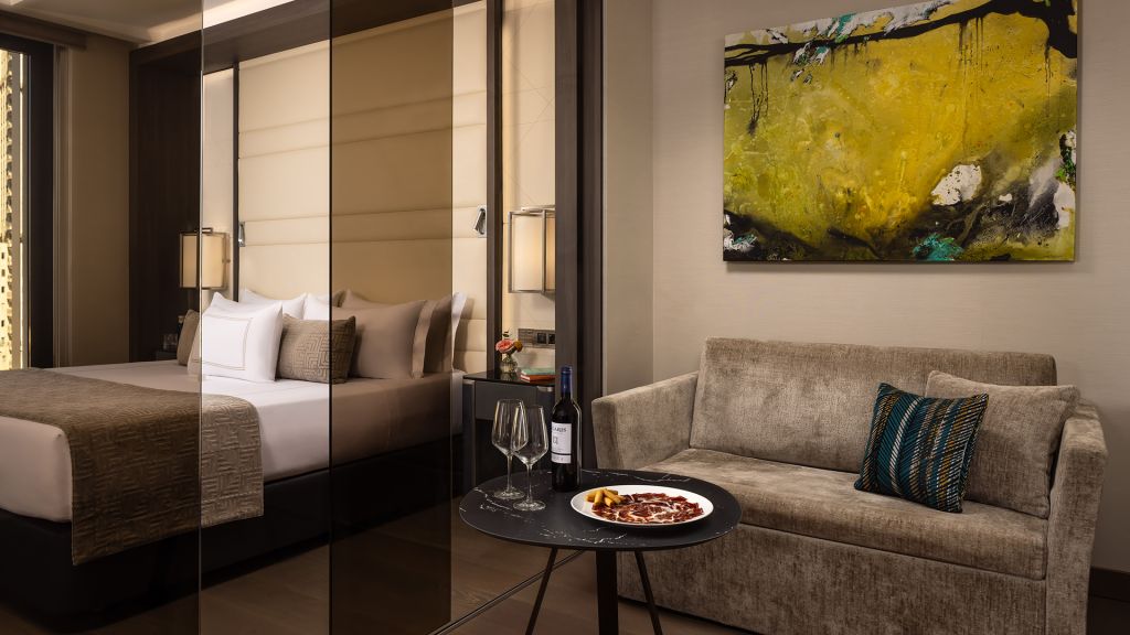 Junior Suite with king or twin bed, living room, spa access, Jacuzzi, Smart TV, AC, premium amenities and Nespresso.